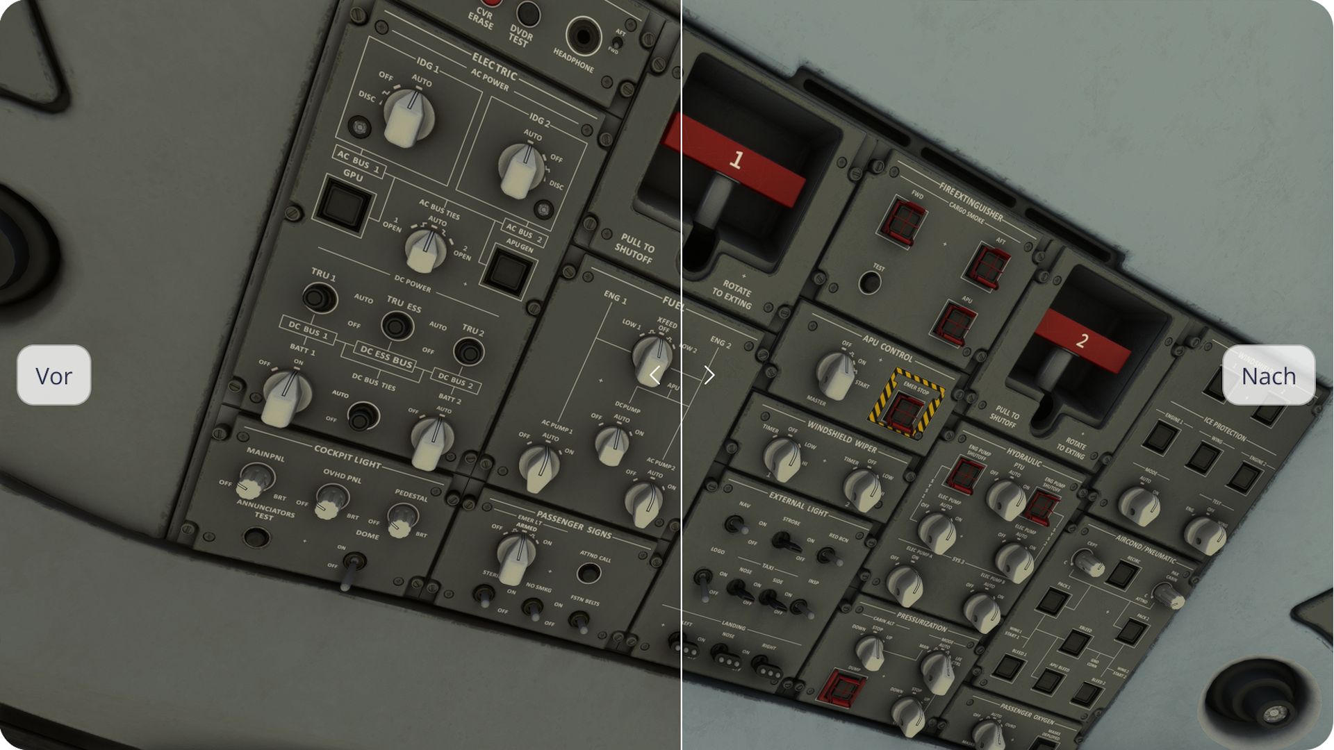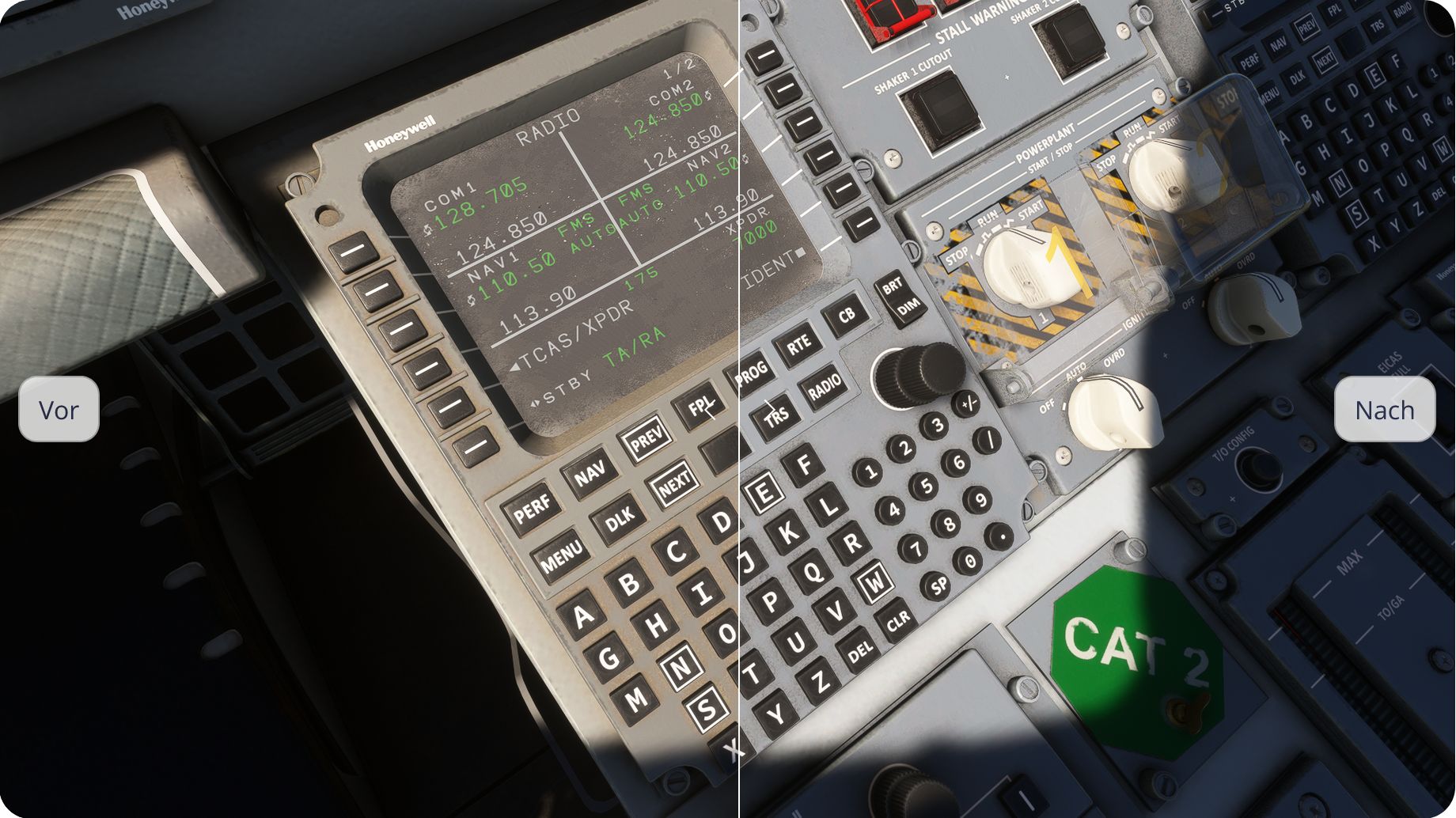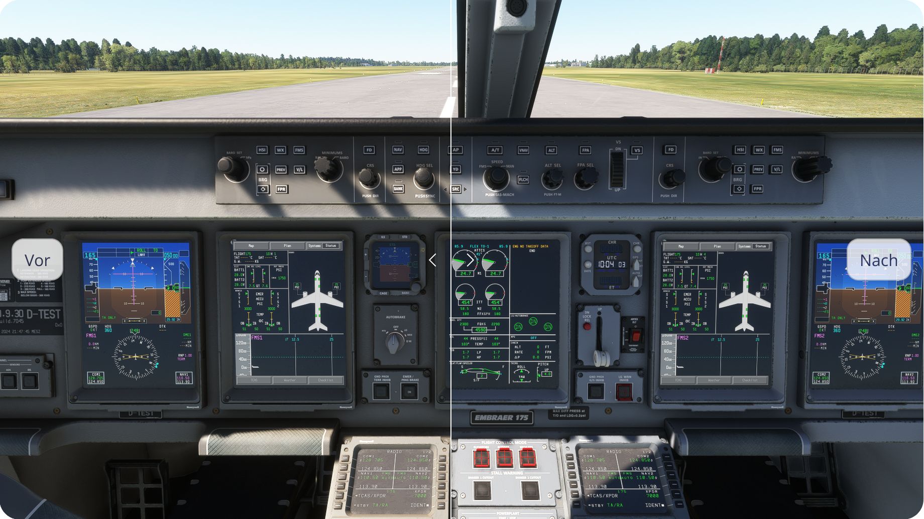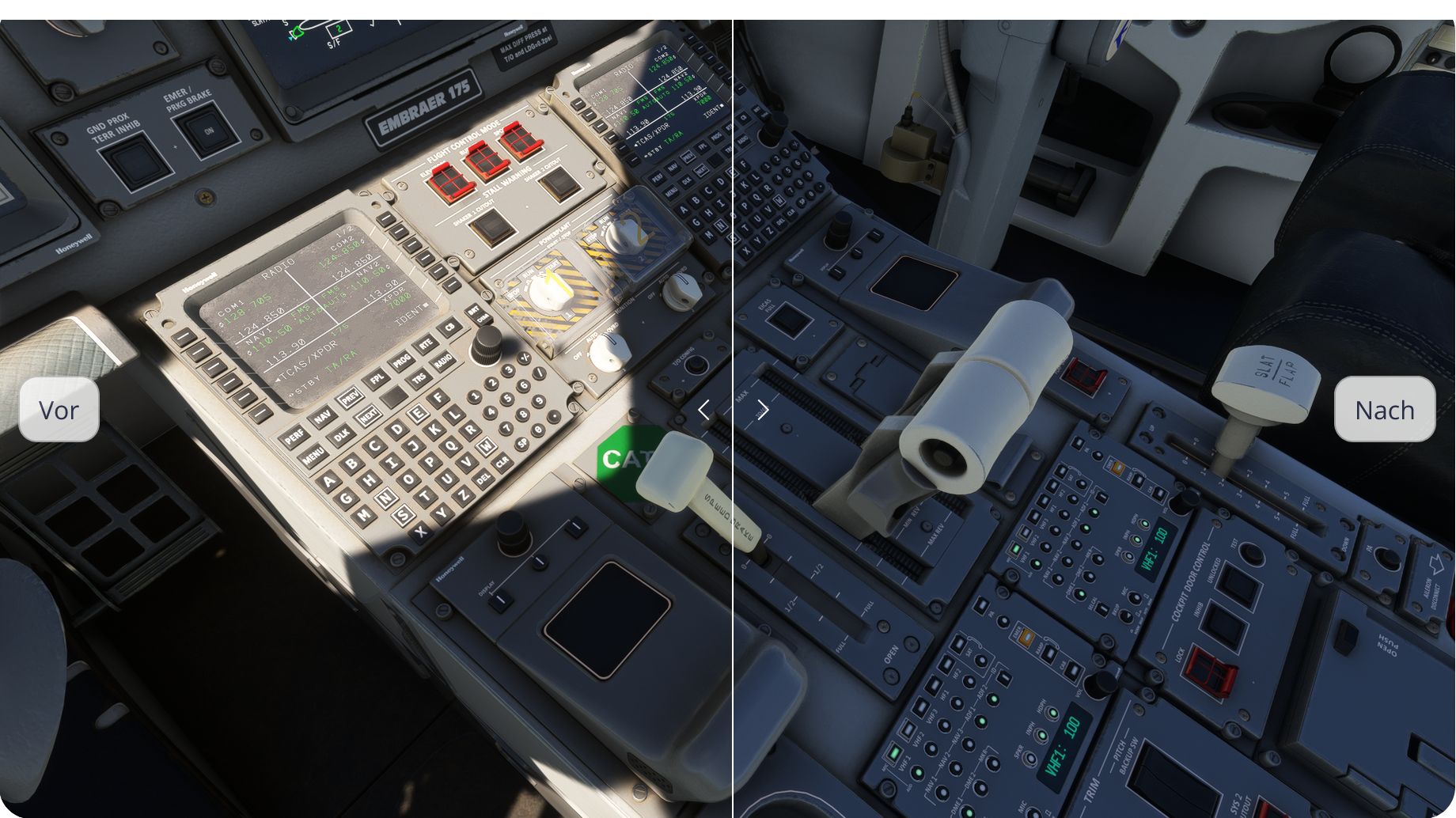 Die FlightSim Studio AG hat für ihre Early Access E-Jet-Familie ein weiteres Update mit Verbesserungen und Neuerungen ausgerollt. So wurden in der neuen Version 0.9.31 etwa die Texturen im Cockpit verbessert. Zahlreiche User hatten darauf hingewiesen, dass ein gewisser Blaustich fehlt. Gemeinsam mit echten Piloten aus der Beta-Gruppe wurde das Farbschema verfeinert. Einige Vergleichsbilder, vorher, nachher…