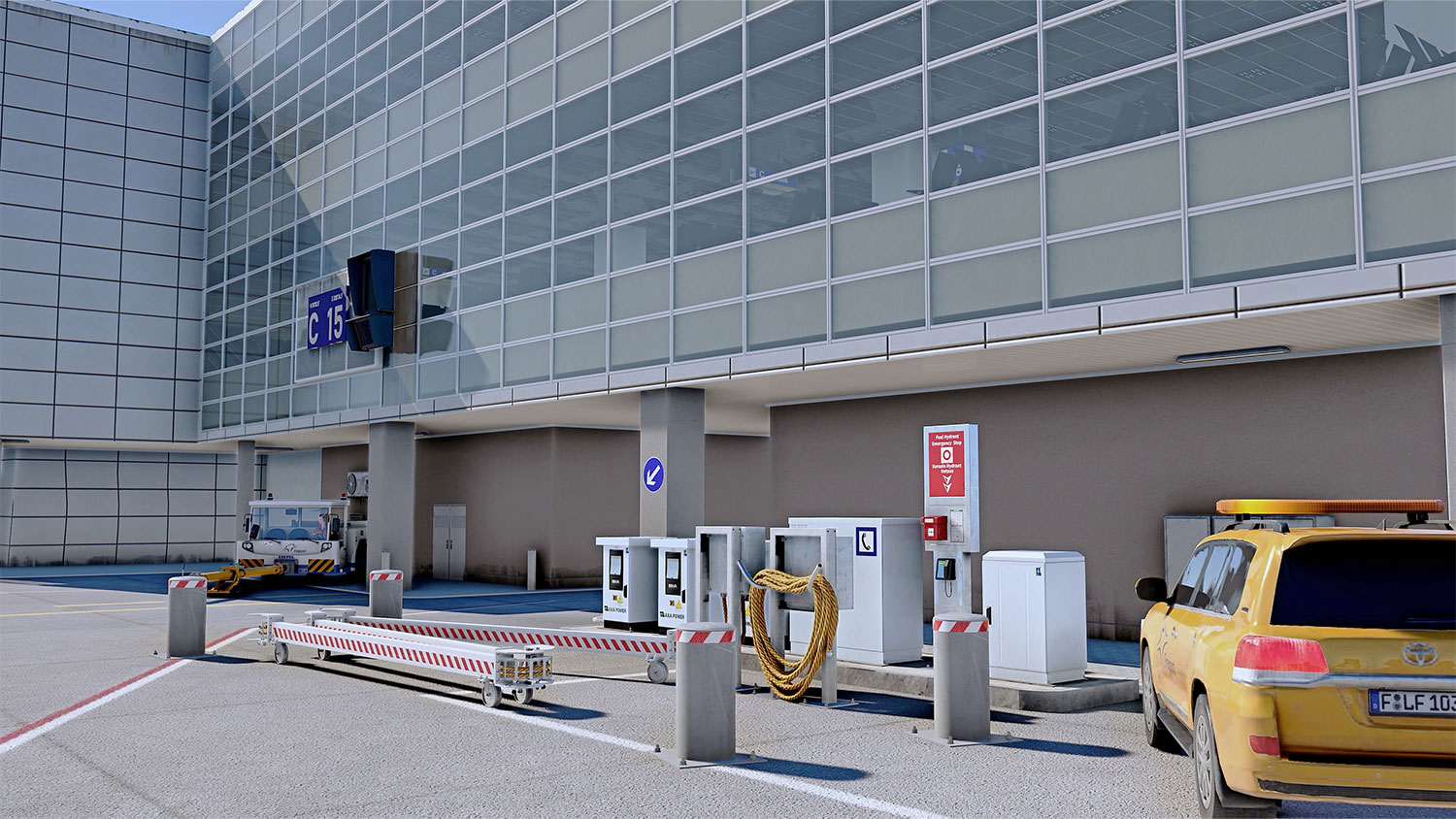 - Akkurate Modelle der Flughafengebäude und -einrichtungen