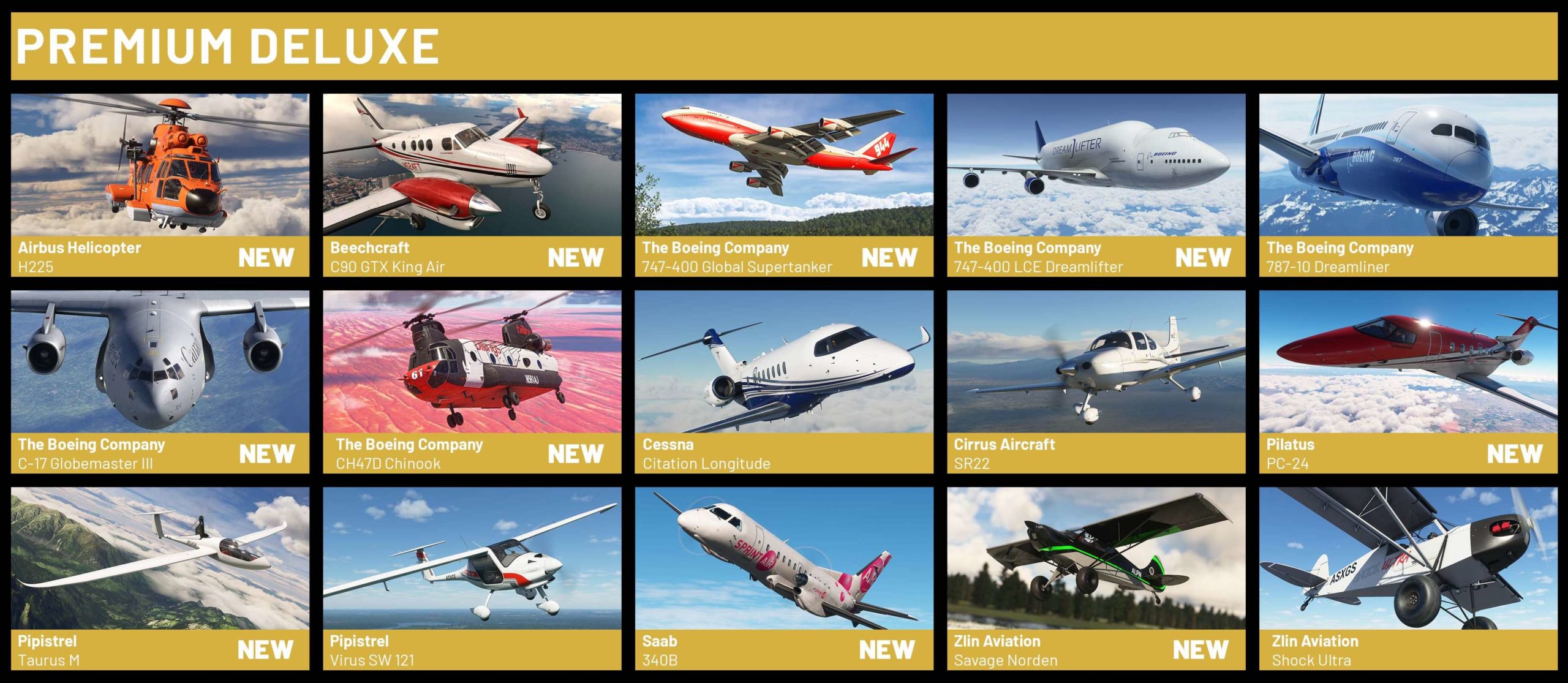 Hier nochmals die Aufstellung der Flugzeuge, die man in der Deluxe und in der Premium Deluxe Edition zusätzlich erhält und die man im MSFS 2024 auch einzeln dazukaufen wird können: