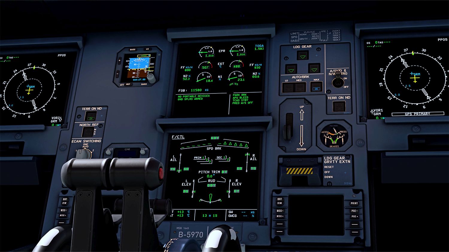 - Erweiterte Bremsen mit realistischen Bremstemperaturen (Modellierung von Goodrich Carbon-Bremsen)