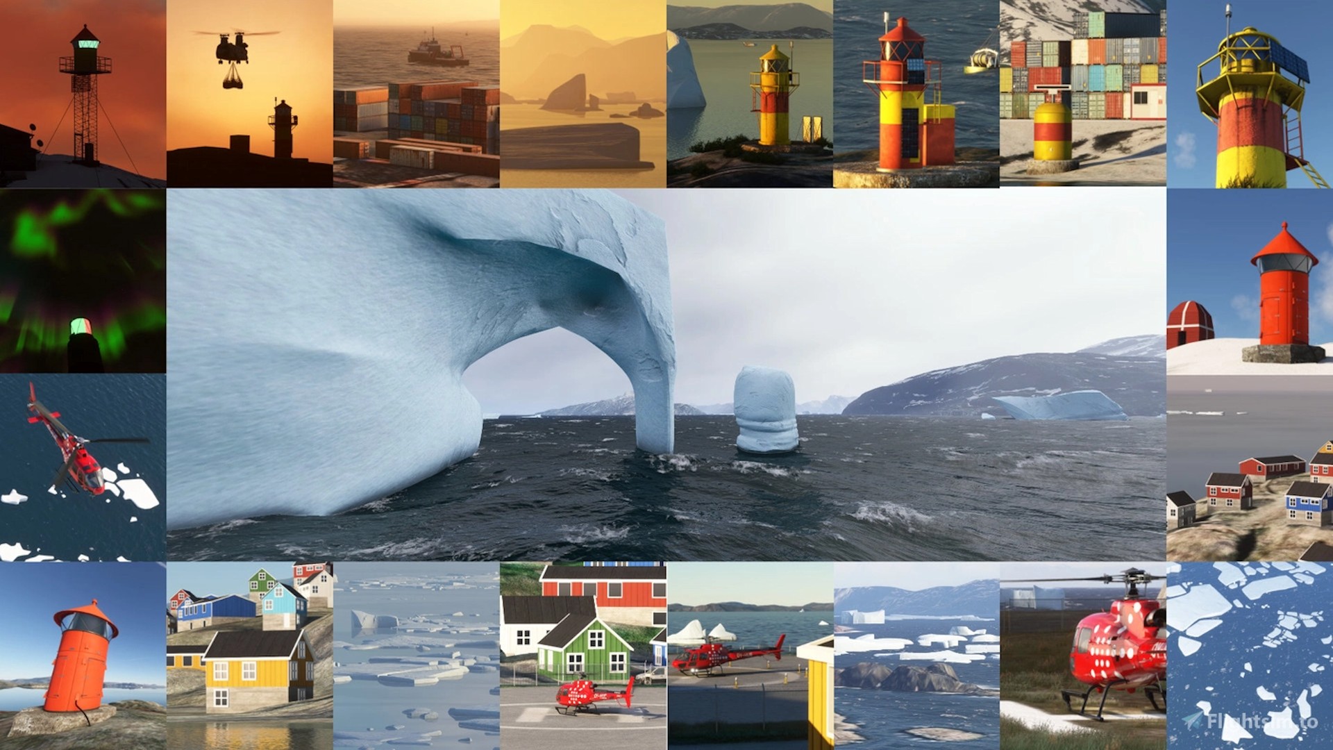 Dieses Megapack bringt eine Vielzahl an detailgetreuen Leuchttürmen, Siedlungen, Helipads und Tausenden von Eisbergen, die Grönlands Küsten in noch nie dagewesener Präzision nachbilden.