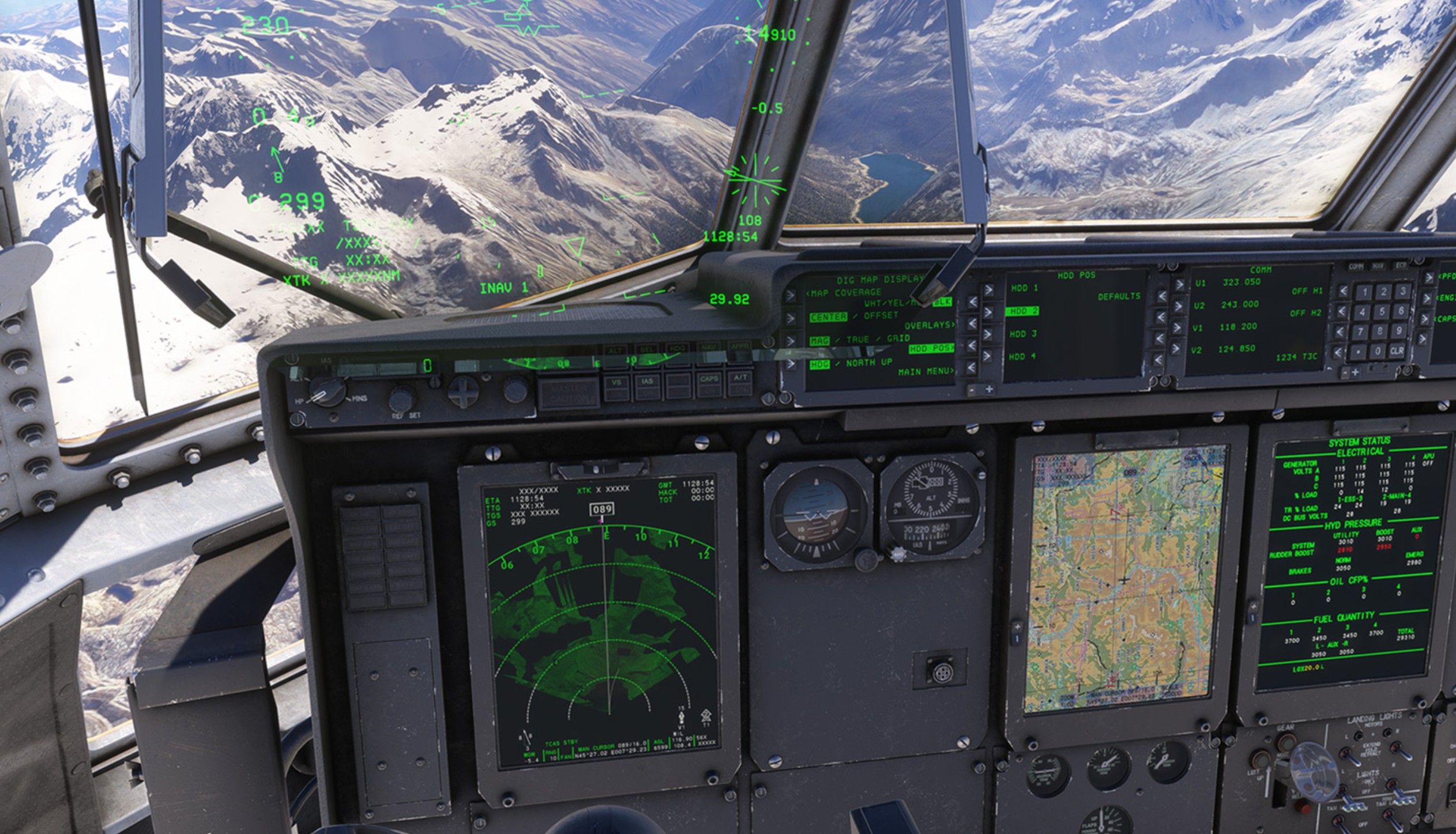 Die C-130 simuliert über 1.000 interaktive Schalter und Sicherungen. Ein dynamisches Fehlersystem erzeugt realistische Ausfälle, abhängig von Systemzustand und Bedienung.