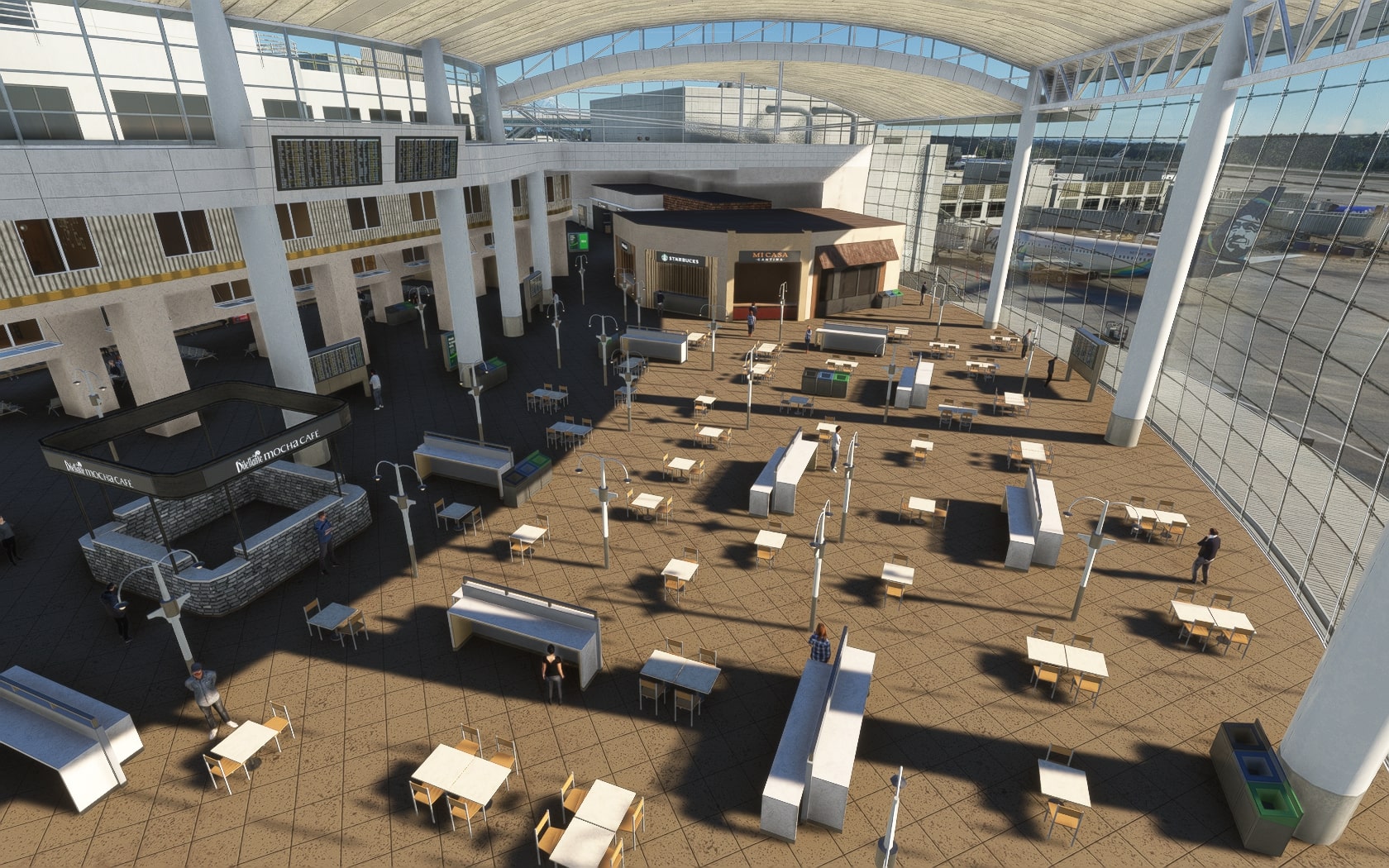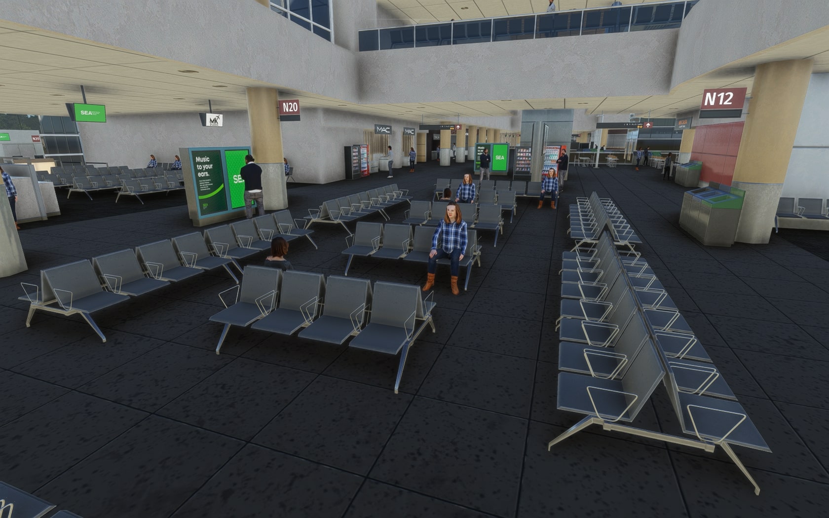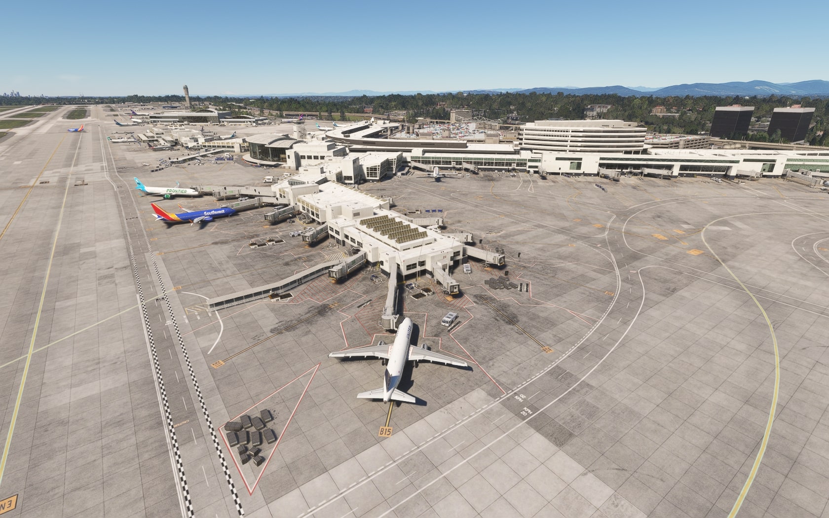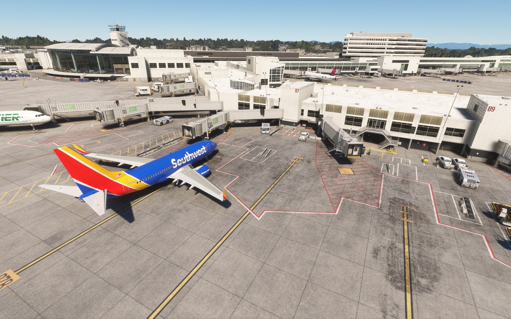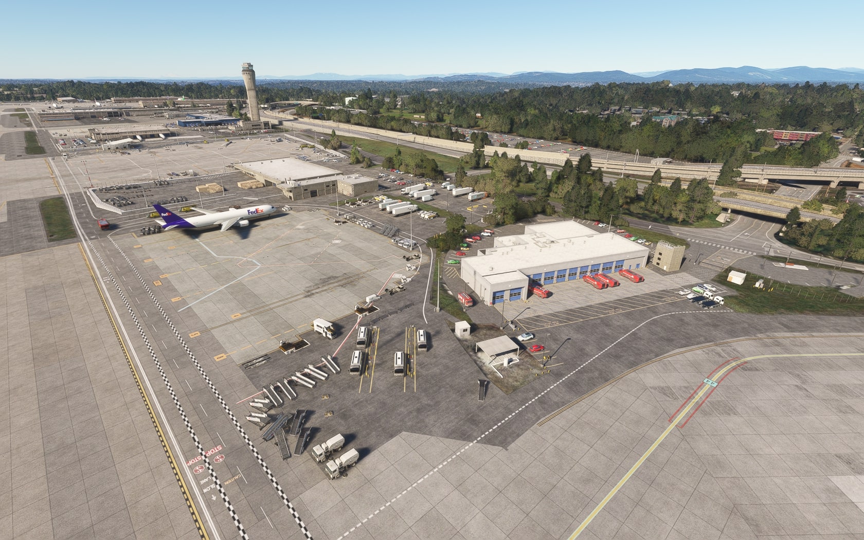 Die South 188th Street, die die 34R und den Taxiway B in einem Tunnel unterquert, wurde sehenswert plastisch umgesetzt. FT und MKS lassen das (Doppler-)VOR/DME SEATTLE SEA 116,80 MHz gegenüber des Rollwegs SIERRA (S) als 3D-Modell mit durchsichtiger Drahtkonstruktion der Rundantenne (BA zeigt eine undurchsichtige Antenne-„Platte“) glänzen und die Line 1 der Straßenbahn bis zu erwähnten Verlängerung fahren. Der Boden sieht mit Schmutzspuren versehen plausibel gebraucht aus.
