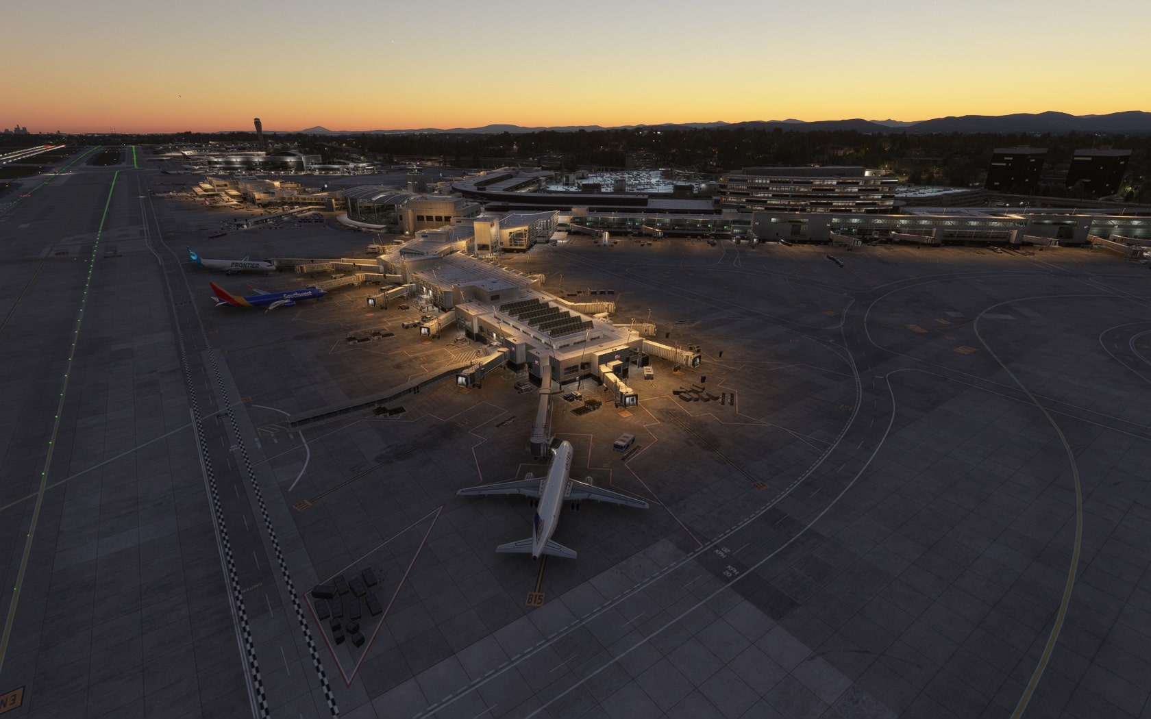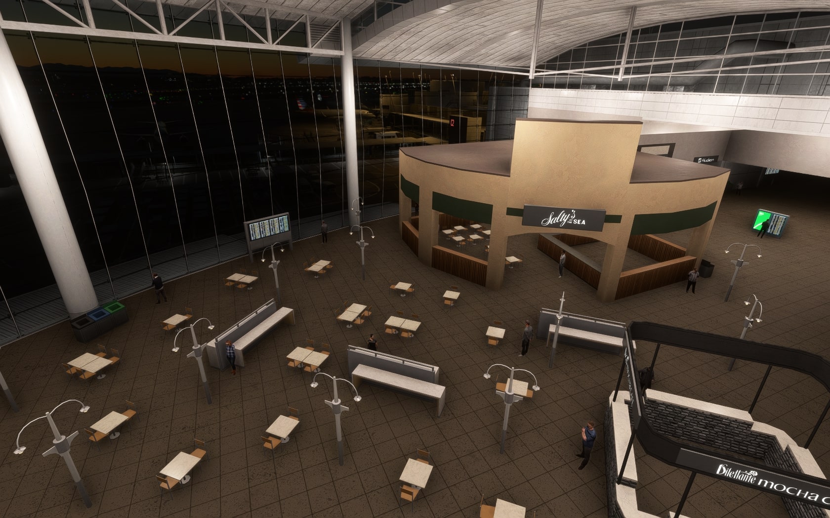 MKS konkurriert mit BA erfolgreich um die am besten texturierten und detaillierten Gebäude auf dem Flughafengelände. Wie BA präsentiert MKS die Airline-Logos beispielsweise an den Hangars im Süden des Platzes, was FT unterlässt. Auch MKS möbliert Terminal, Concourses und Satelliten, wobei MKS klar als der innenarchitektonische Sieger hervorgeht.