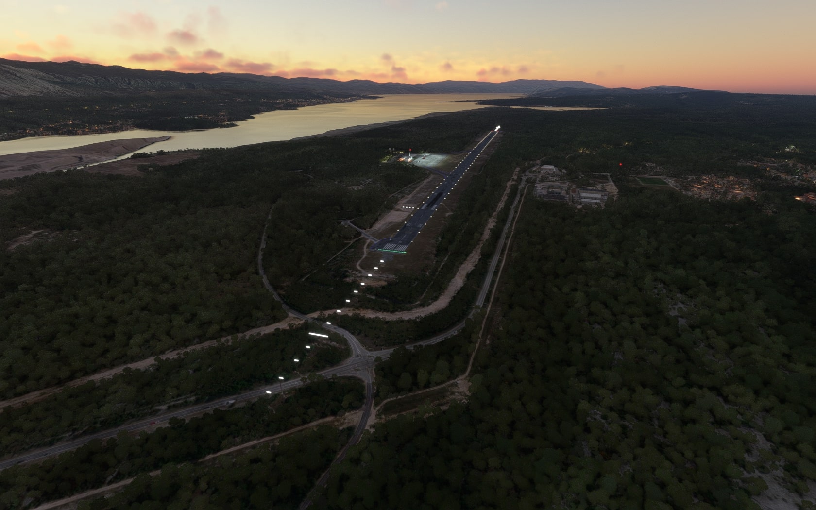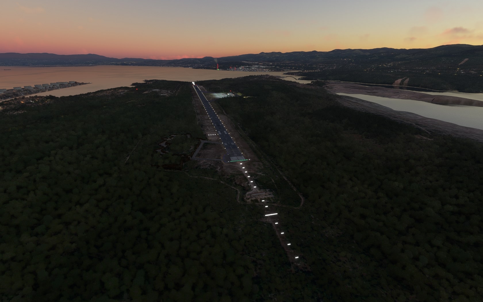 Die beiden Anflugbefeuerungen leuchten in „alle“ Richtungen und die Bahnenden wurden im initialen Release mit Runway End Identifier Lights (REIL) ausgestattet. Von ihnen wissen die Karten von Jeppesen und der Croatia Control nichts. PESIM hat die REIL inzwischen gelöscht – die aktuelle Version kann via PESIM Central installiert werden – und die Anflugbefeuerungen auf die „To do“-Liste für ein kommendes Update gesetzt. Um die Darstellung des LNG-Terminals wurde PESIM ebenfalls gebeten, was akzeptiert wurde…