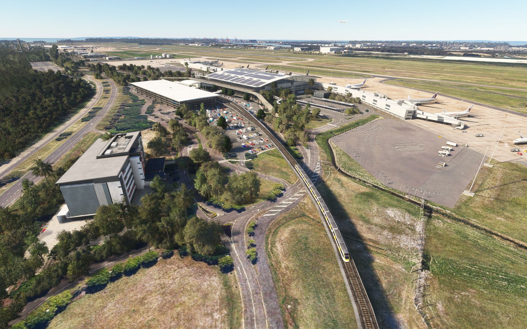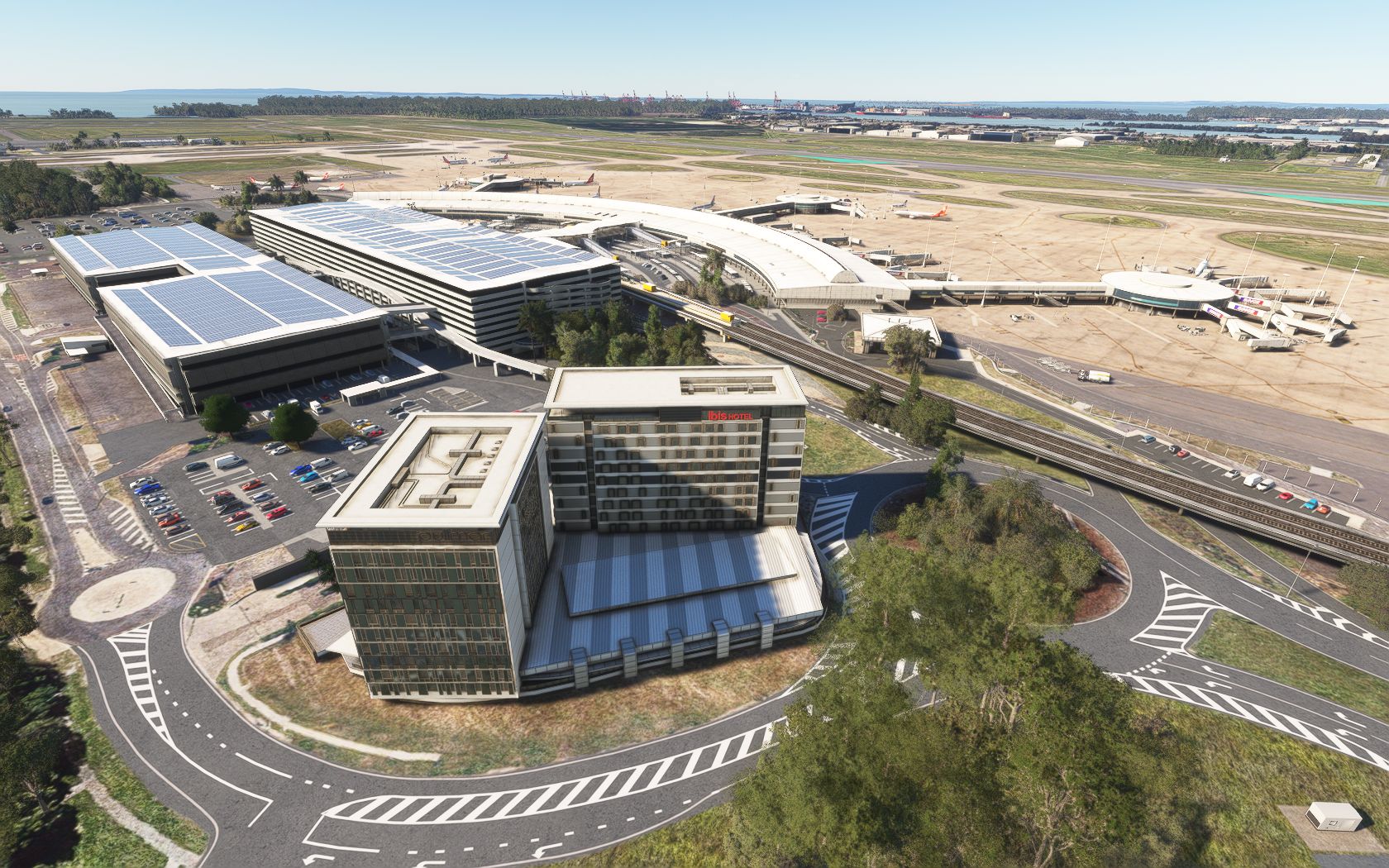 Auch in der Umsetzung für den „anderen Flugsimulator“ stimmen alle navigatorischen Einrichungen mit dem Vorbild-Flughafen überein, der „Airtrain“ fährt, das Sir Charles Kingsford Smith Museum und das Doppler-VOR/DME sind anwesend und die Terminals wurden einfach(er) möbliert. Die Jetways sind zum Szenery Animation Manager (SAM) von Stairport Sceneries kompatibel.