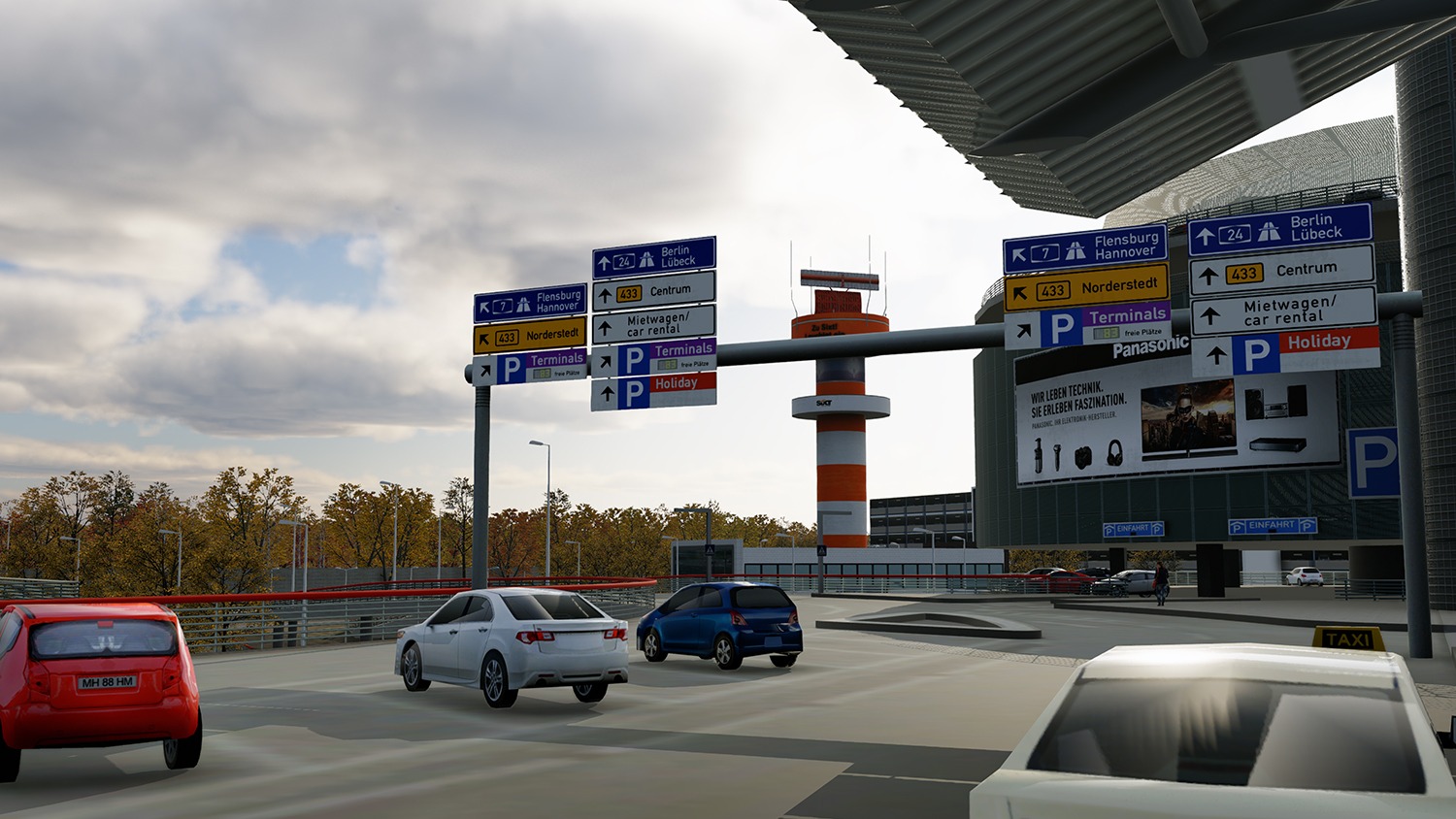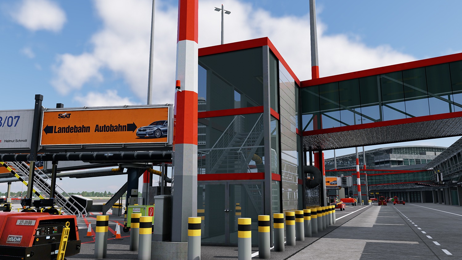 Auch die Umgebung des Flughafens wurde berücksichtigt. Dazu zählen unter anderem 3D-Modelle des tiefergelegten Autobahnzubringers, der halb überdeckten Autobahn sowie statische und animierte Vorfeldfahrzeuge. Straßenverläufe und Autogen-Objekte rund um das Gelände wurden angepasst.