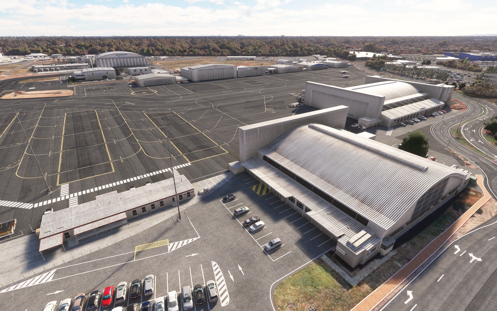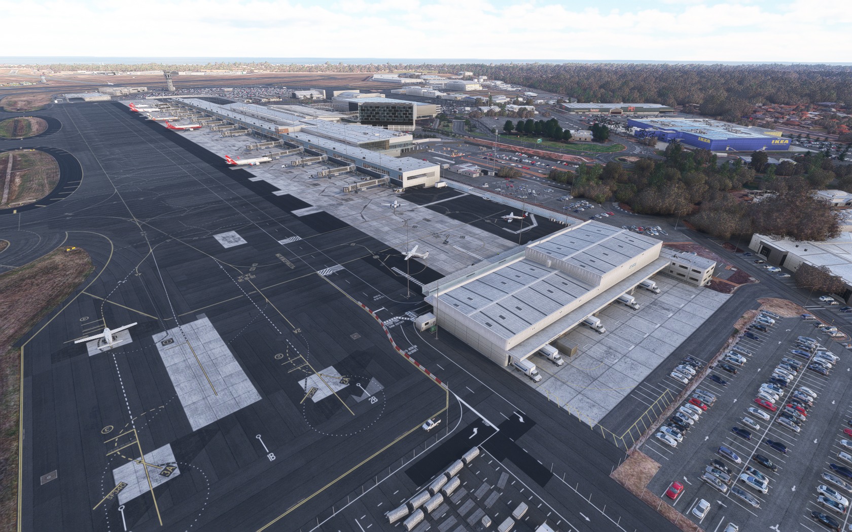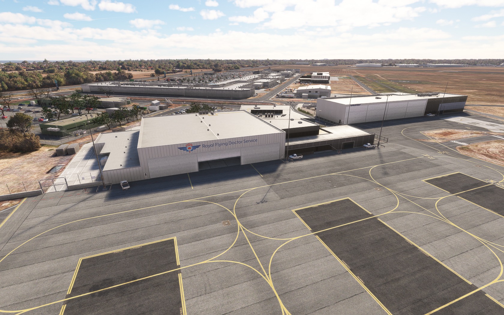 Neben der detailliert umgesetzten Luftseite werden ein (unvermeidliches) schwedisches Möbelhaus, ein Hotel, die Zufahrt, das Parkhaus, der Hangarbereich und der des „Royal Flying Doctor Service“ mitsamt des Hangars von Pilatus gezeigt.