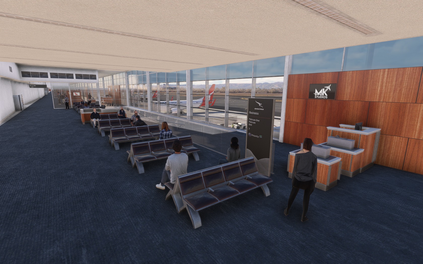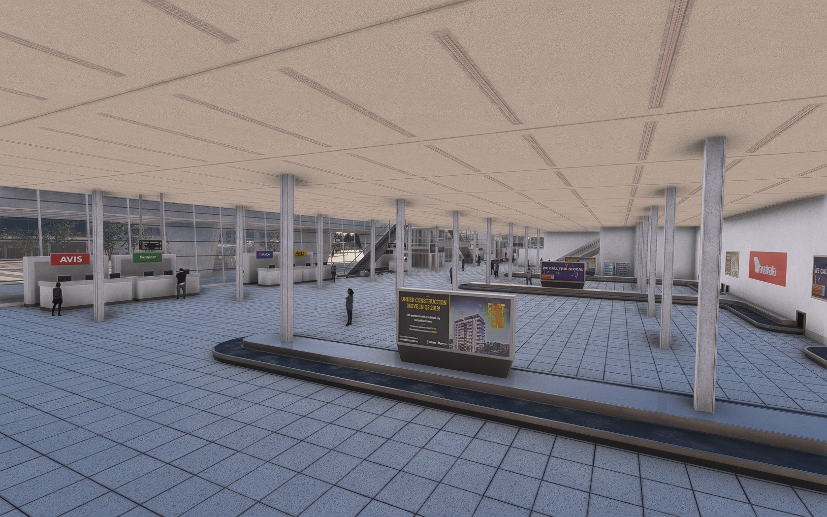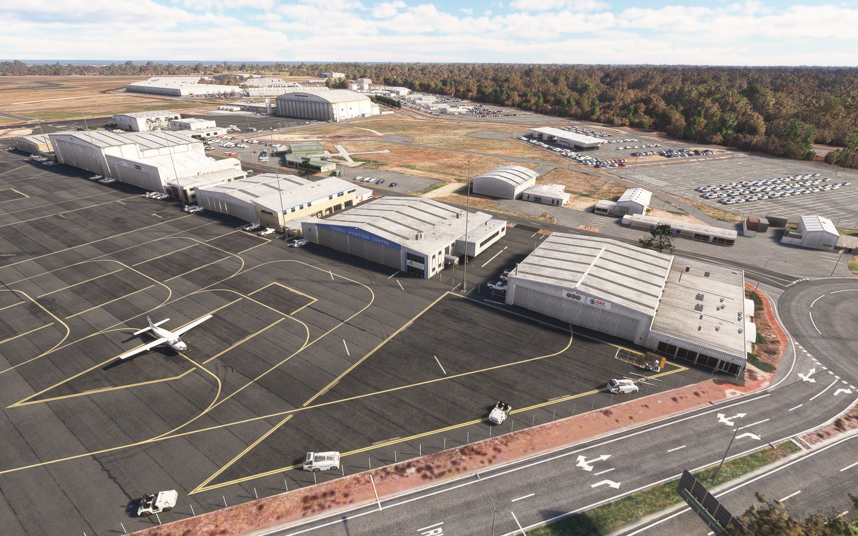 Neben der detailliert umgesetzten Luftseite werden ein (unvermeidliches) schwedisches Möbelhaus, ein Hotel, die Zufahrt, das Parkhaus, der Hangarbereich und der des „Royal Flying Doctor Service“ mitsamt des Hangars von Pilatus gezeigt.