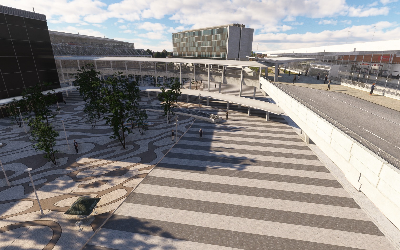Der Platz kann ausschließlich auf der Straße erreicht werden. Es besteht eine Schnellbusverbindung zur Innenstadt. Der Plan, eine U-Bahn-Linie zum Flughafen zu bauen, wurde aus Kostengründen aufgegeben.