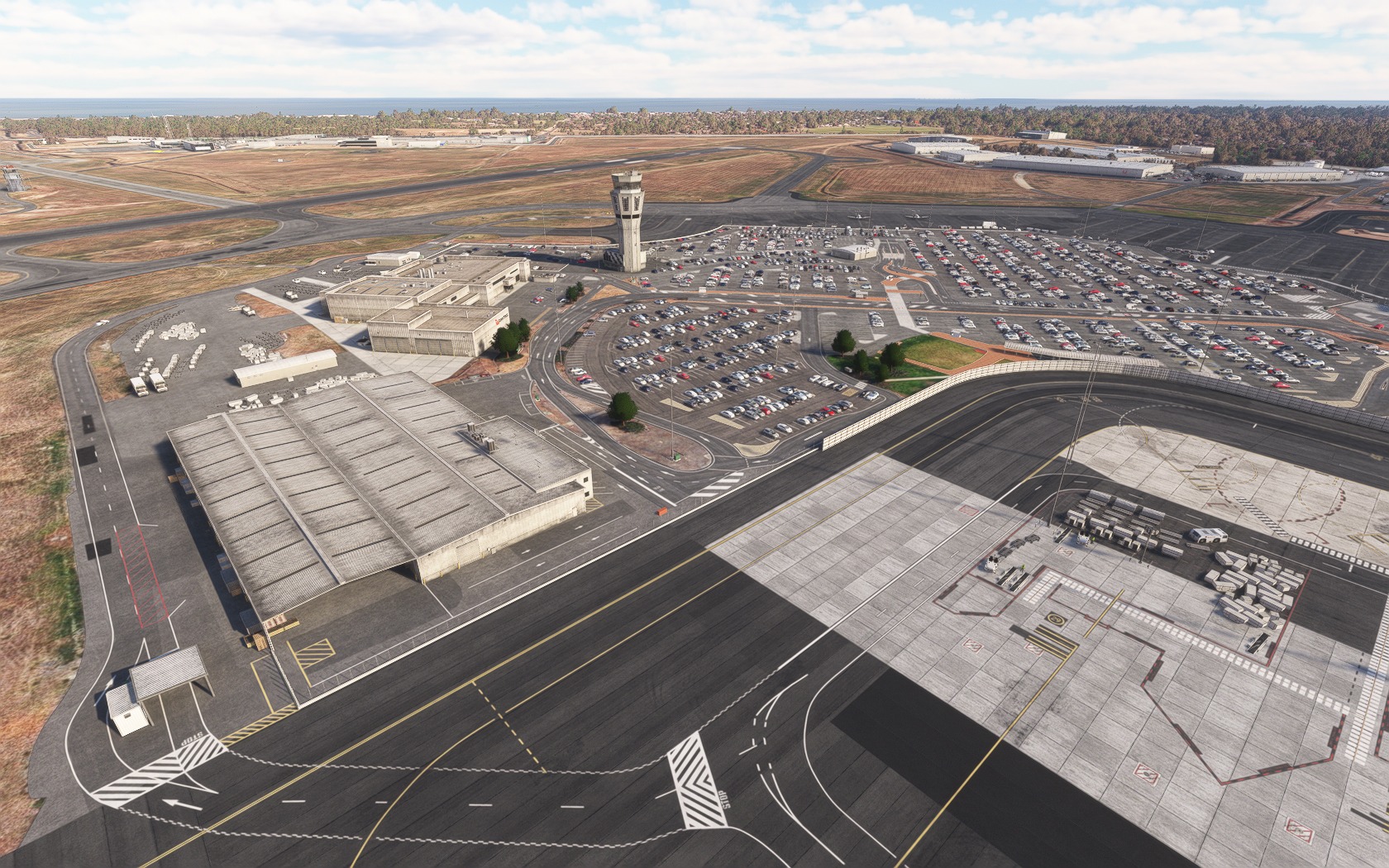 MK Studios zeigen den aktuellen Ausbaustand des Airports. Im Vergleich dazu ist die Szenerie von Impulse Simulations aus dem Jahr 2021 im besten Wortsinn „offensichtlich“ veraltet, die insgesamte Darstellung erheblich besser gelungen und der Detailgrad wesentlich höher. So gibt es beispielsweise sich drehende Radarschirme, eine handgemachte Anflugbefeuerung für die 23 und ein Trainingsgelände für die Flughafenfeuerwehr mit herrlich verrostetem Flugzeugrumpf. Das Terminal wurde möbliert, Teile der Inneneinrichtung sind vom Cockpit davor geparkter Flugzeuge zu sehen.