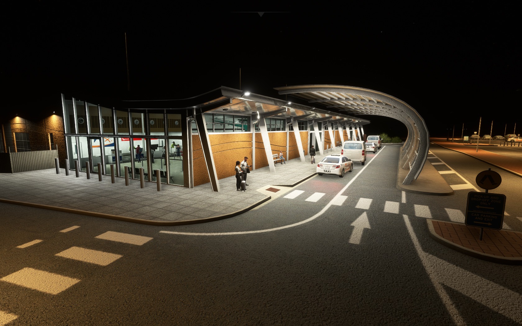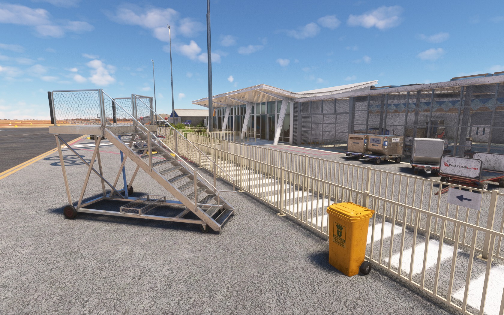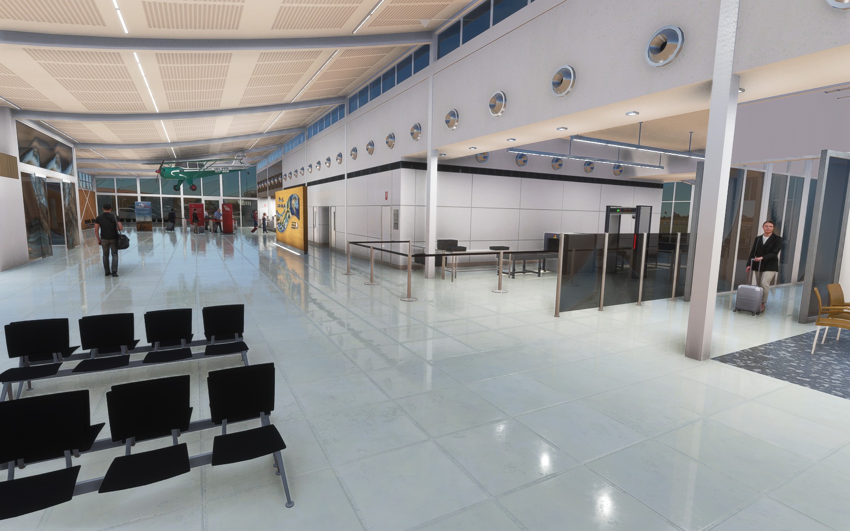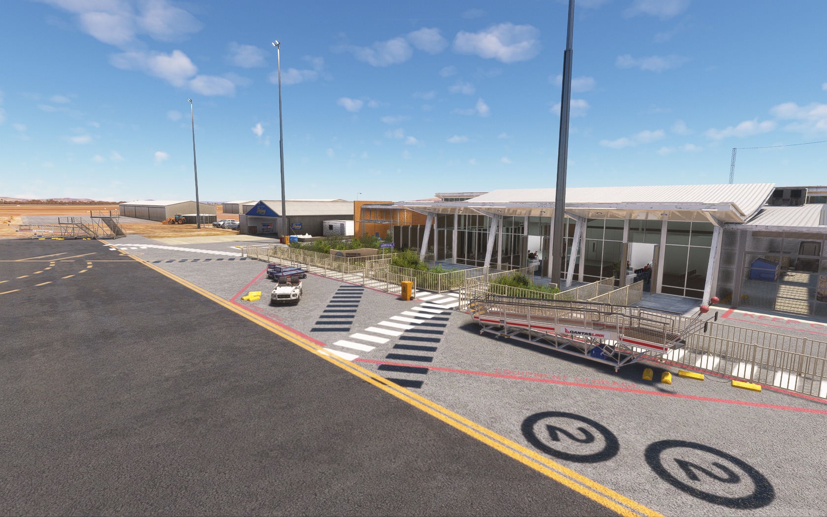 Beworben wird das Add-on mit aktuellem Layout, mehr als 200 handgemachten und 1.000 hinplatzierten Objekten, Animationen, einer gut gemachter Beleuchtung und einem möblierten Terminal-Inneren. Im Anflug zeigt sich der abgelegene Airport nahtlos in seine Umgebung eingepasst. Die etlichen Details am Boden, vor allem rund um das (und im) Terminal auf Land- und Luftseite, sind allesamt sehenswert und laden zu einem Rundgang ein.
