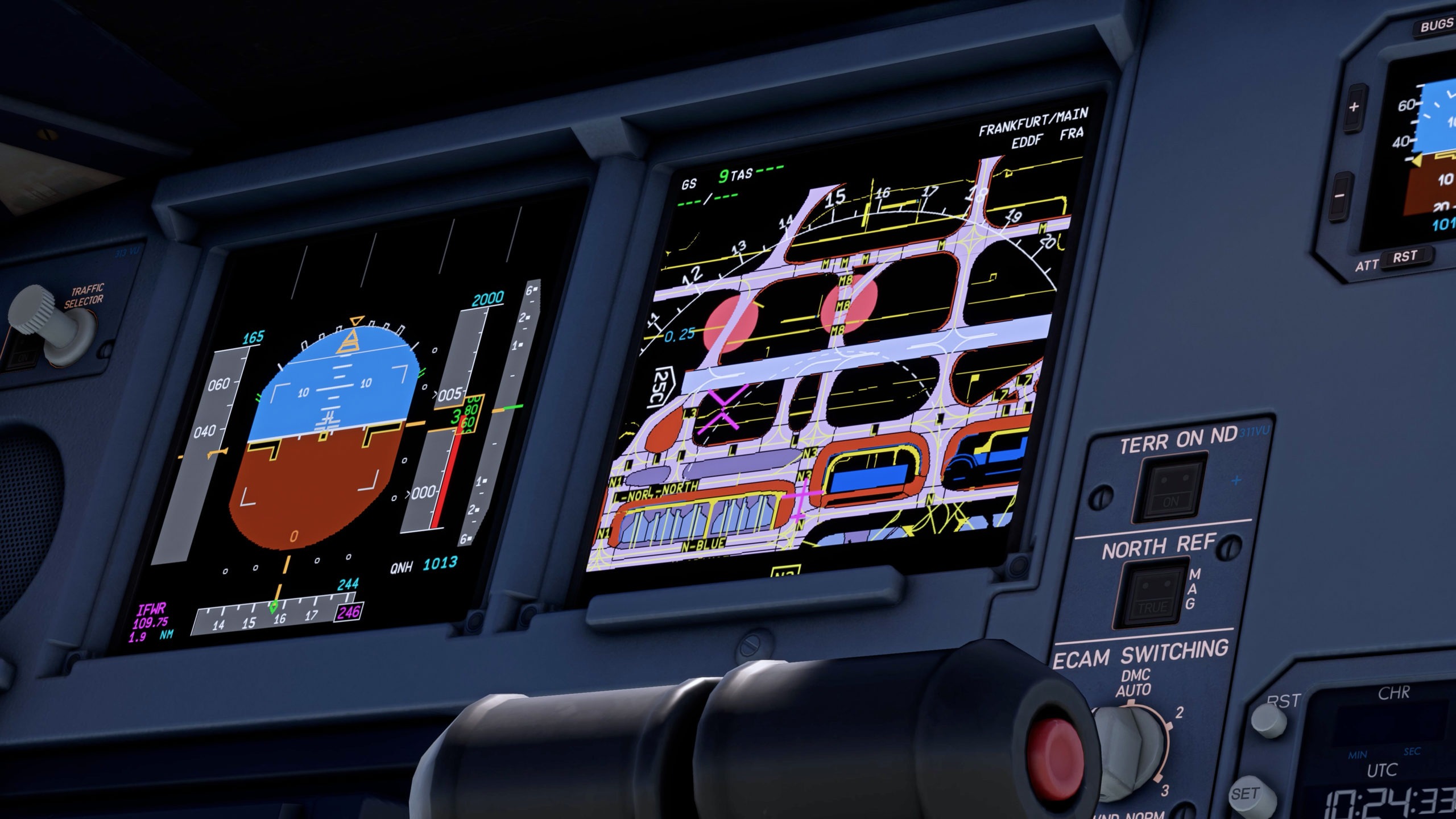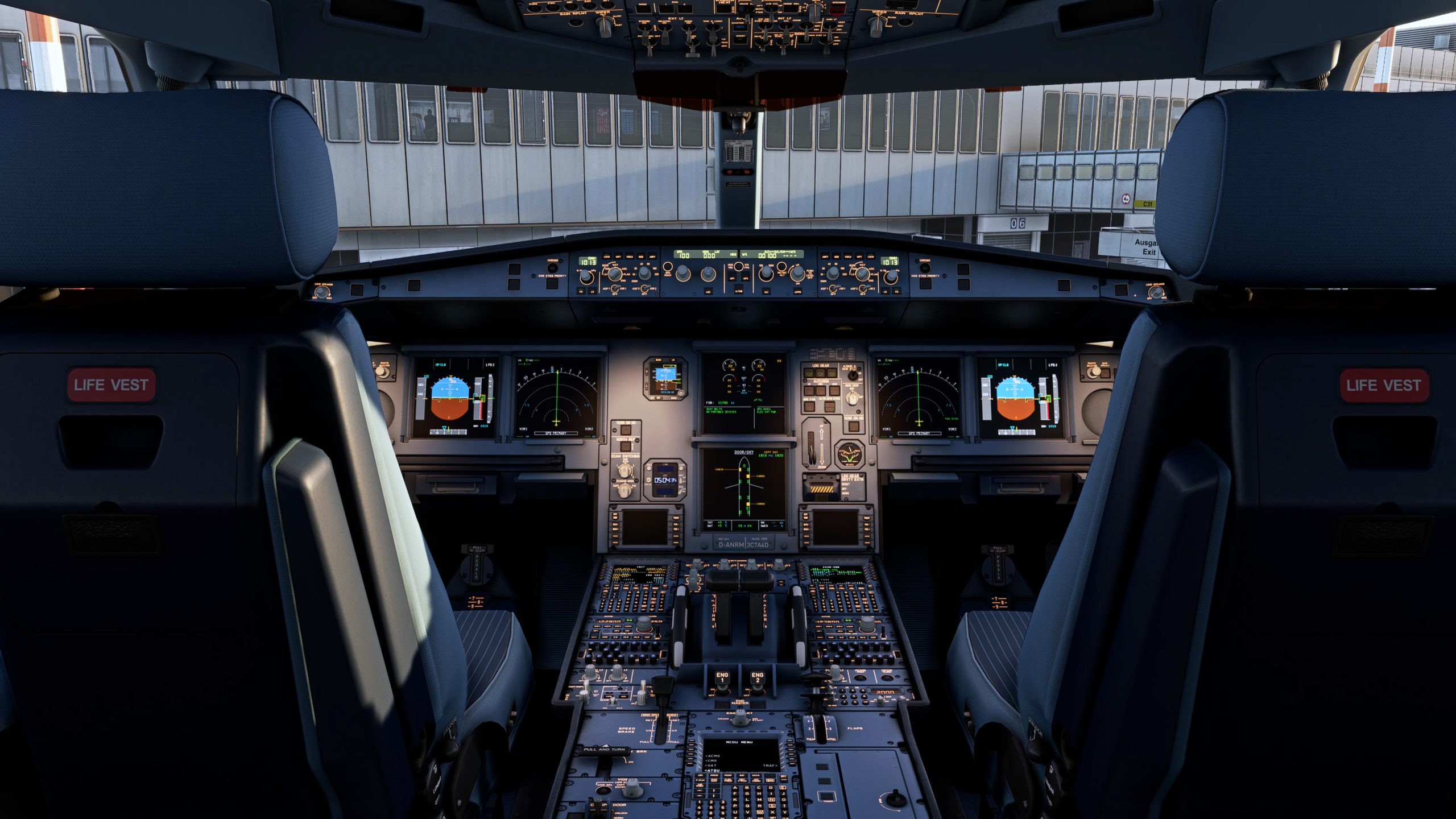 Das Entwicklerteam betont, dass das Flight-Management-System komplett neu programmiert wurde und sowohl LNAV als auch VNAV inklusive Autopilotmodi unterstützt. Die beiden MCDUs arbeiten unabhängig voneinander, SimBrief-Import und automatische Beladung über das EFB sind direkt integriert. GSX-Kompatibilität ist ebenfalls gegeben. Auch das bei Airbus-Piloten beliebte OANS (Onboard Airport Navigation System), das eine präzise Darstellung von Rollwegen und Standplätzen auf dem Navigationsdisplay ermöglicht, wird unterstützt.
