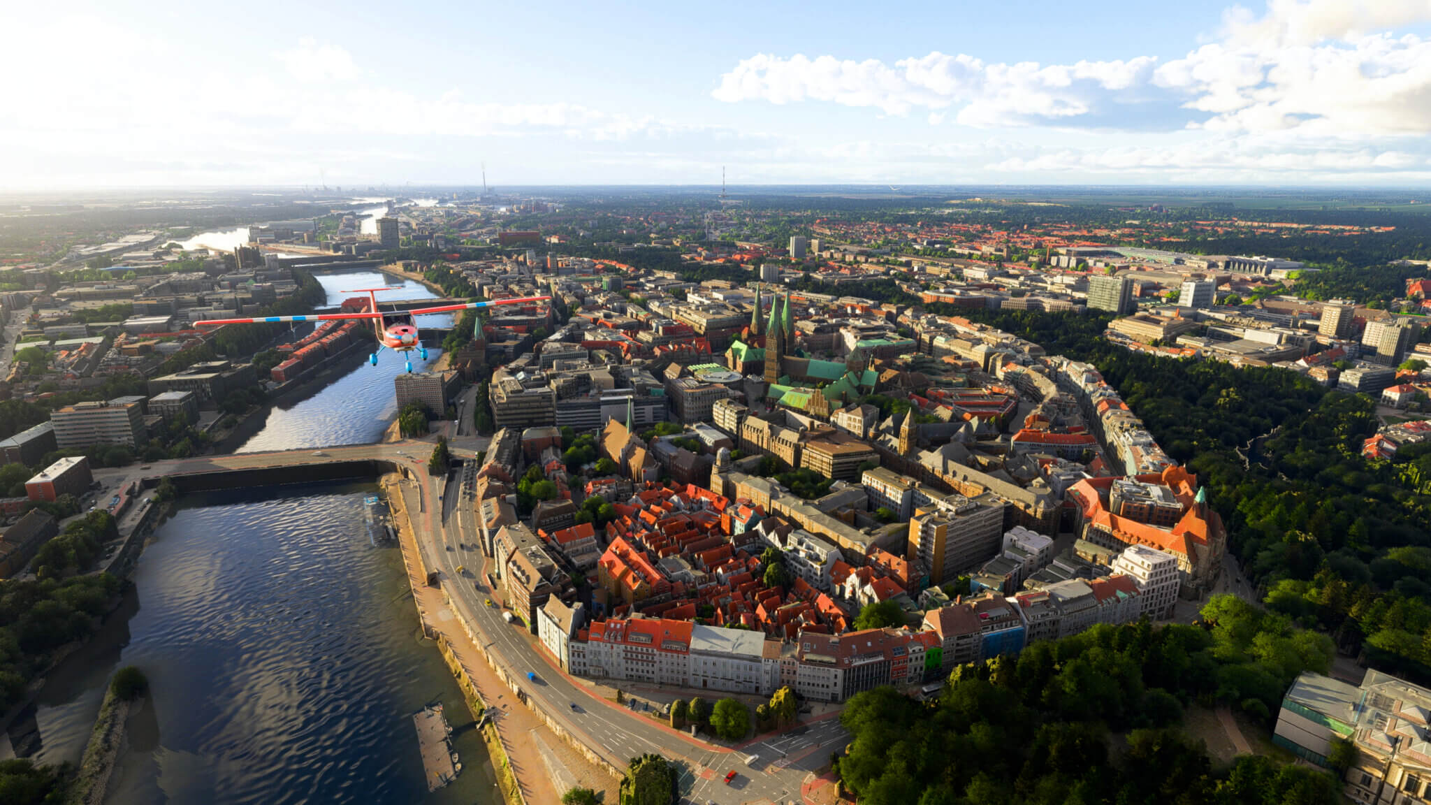 Die aktualisierten Städte, fotorealistisch in 3D, sind Augsburg (Bayern), Bremen (Bremen), Dresden mit Leuben sowie Leipzig (Sachsen), Kiel (Schleswig-Holstein) und Münster (Nordrhein-Westfalen). Jede Stadt bietet kulturelle Highlights und bedeutende Architektur – von der Fuggerei in Augsburg über das UNESCO-geschützte Bremer Rathaus bis zur Frauenkirche in Dresden. Das Update lädt dazu ein, Deutschlands Vielfalt aus der Luft mit noch höherem Detailreichtum zu erkunden.