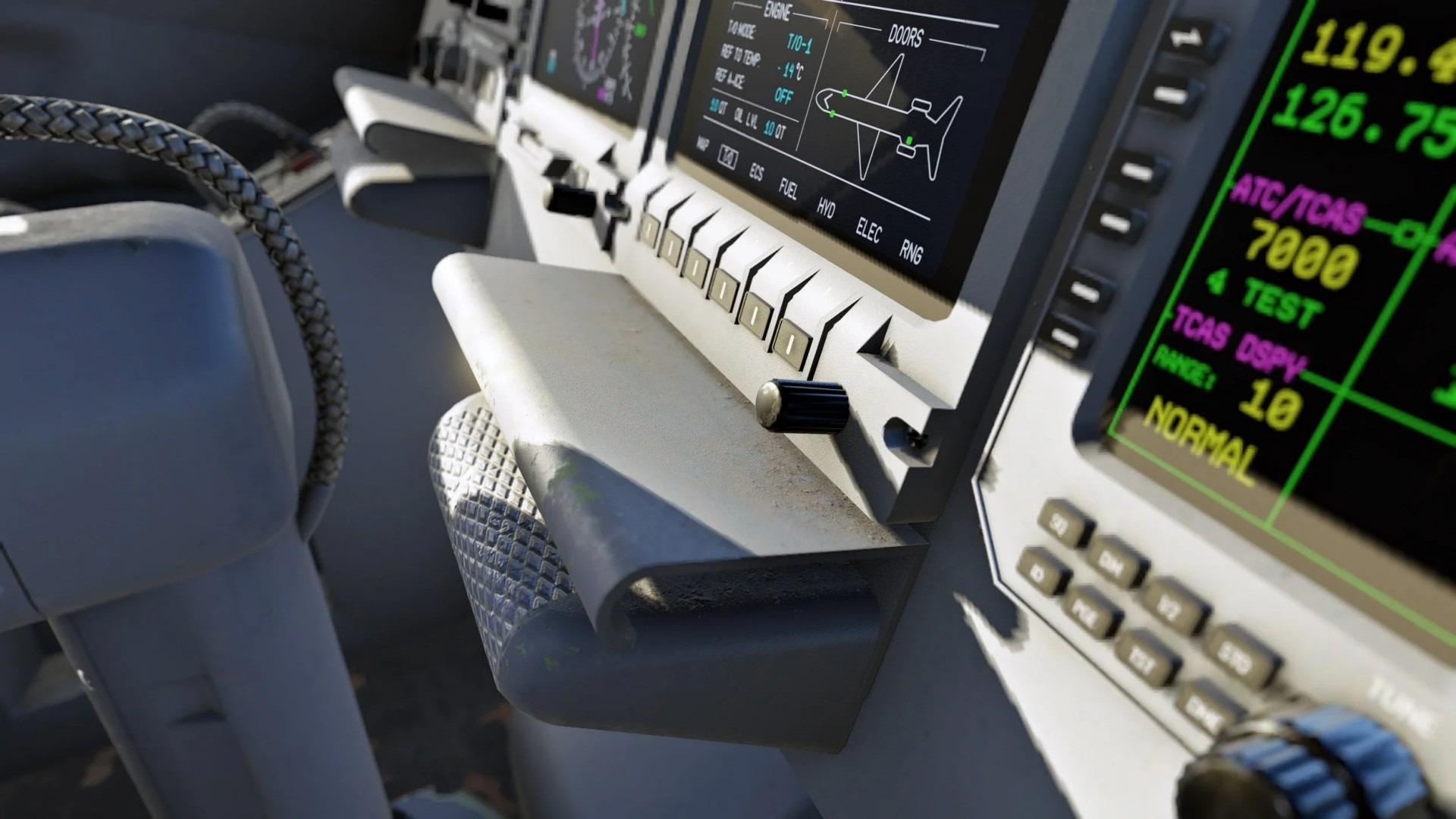 So wurde der gesamte Cockpitbereich texturseitig überarbeitet. Feinste Details wie Körnung oder Staub bleiben auch bei starker Vergrößerung sichtbar, ohne dass die Performance leidet. Möglich wird dies durch neue Optimierungstechniken, die bereits beim Lineage 1000 eingesetzt wurden.