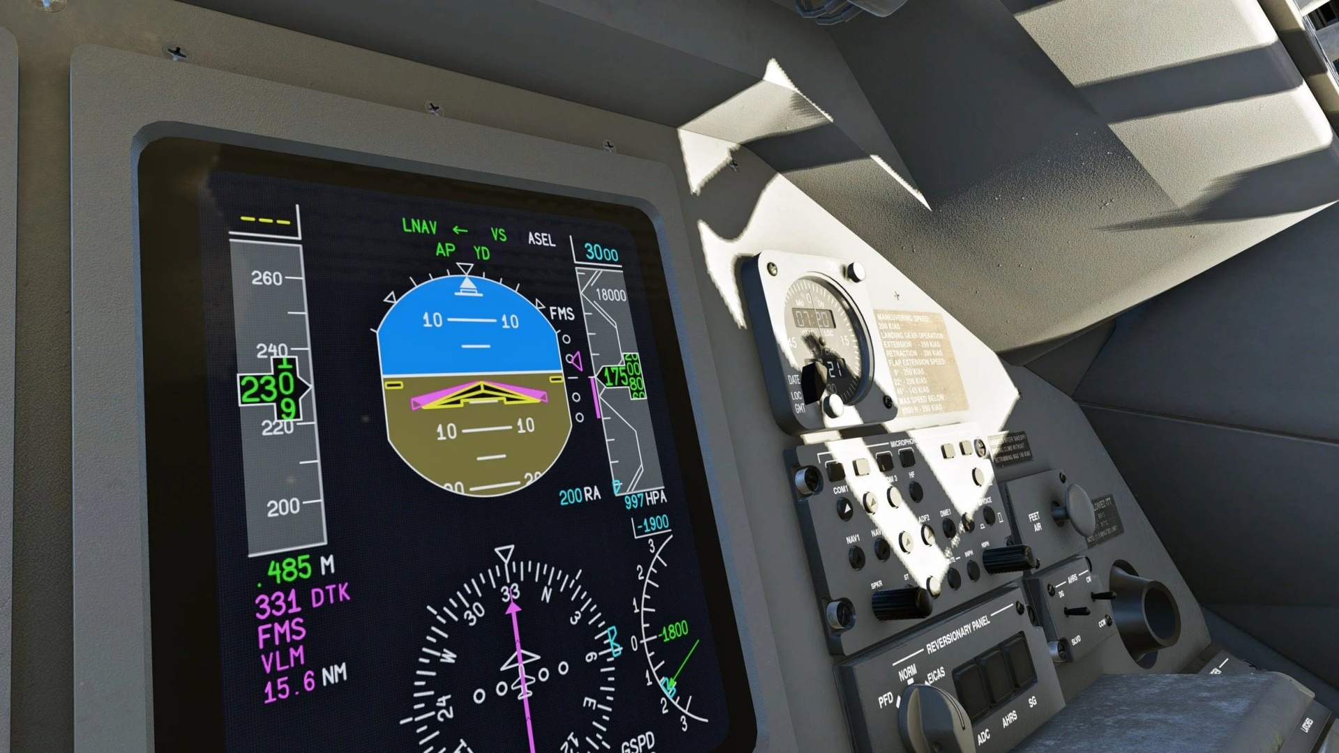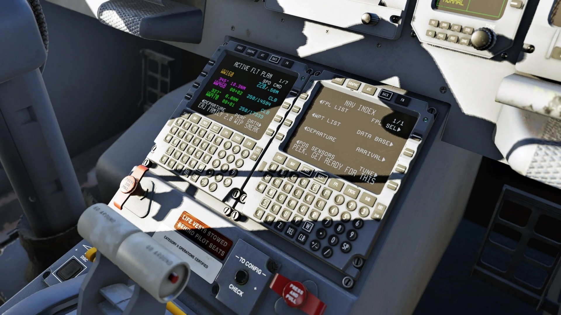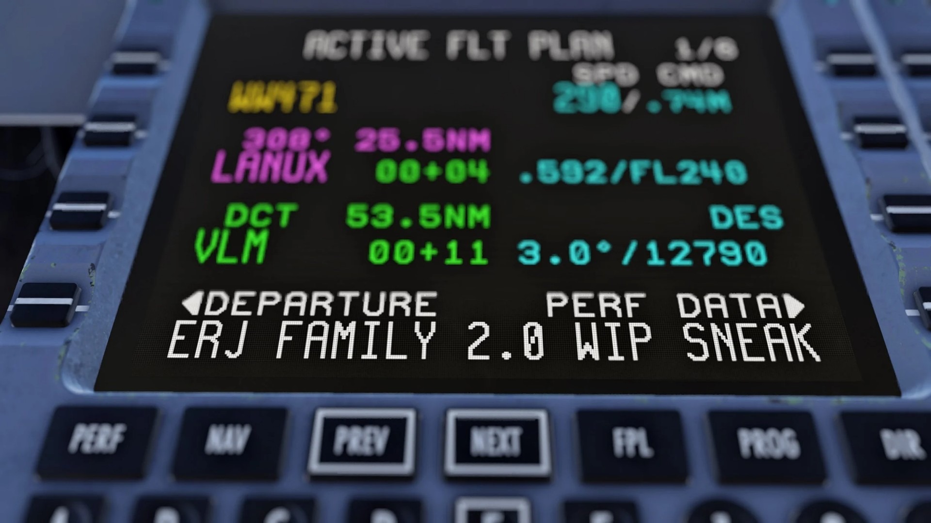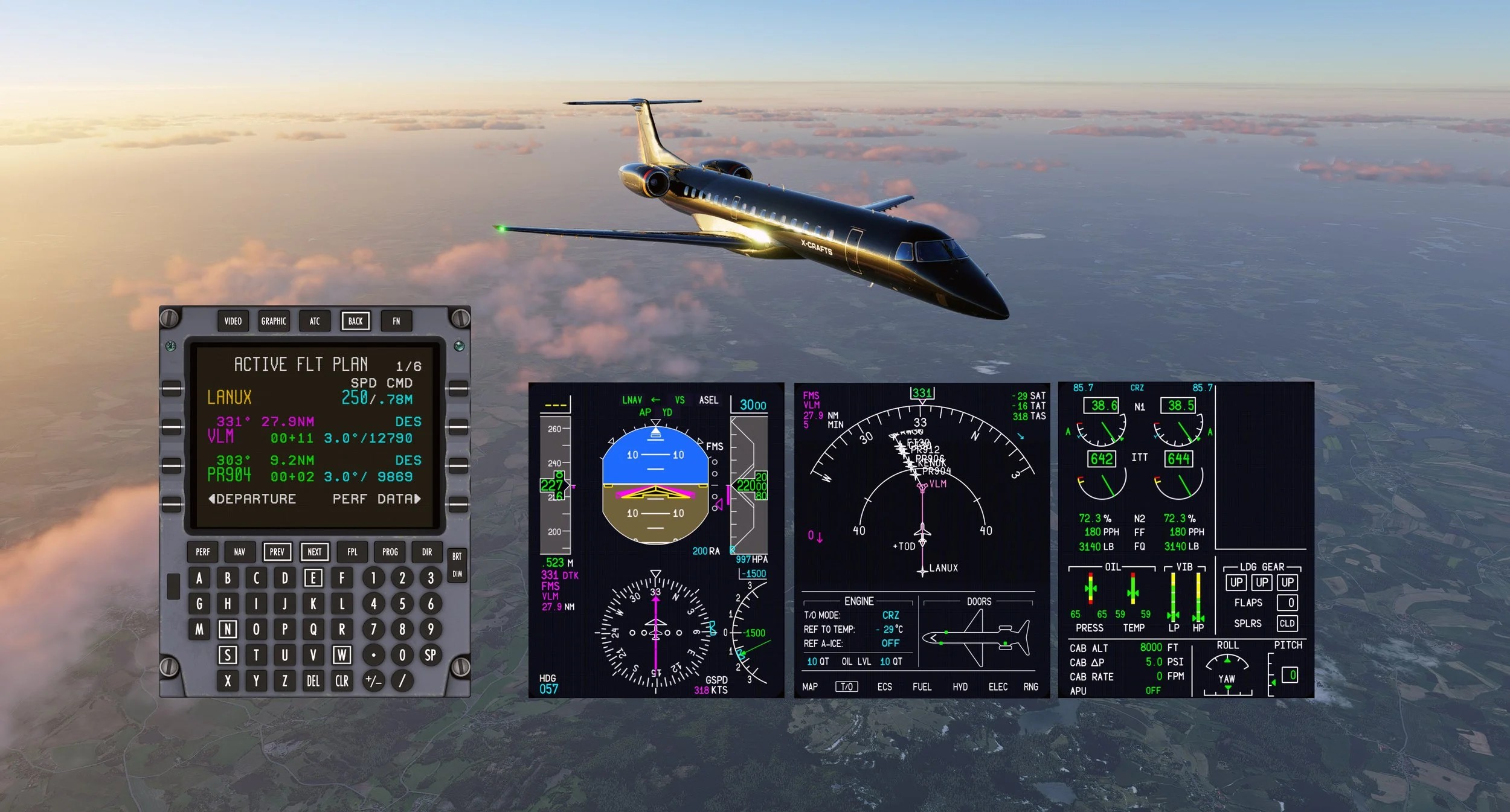 Besonderes Augenmerk liegt auf einer originalgetreuen Nachbildung des Honeywell-FMS. Schriftarten und Pixelstrukturen wurden exakt nachempfunden, was für ein authentisches Bild sorgt.