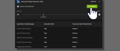 Wer den Microsoft Flight Simulator 2024 oder 2020 am PC nutzt, kennt das Problem: Weit über 30 verschiedene Grafikeinstellungen können angepasst werden. Diese Fülle an Optionen eröffnet zwar viele Möglichkeiten, kann aber auch schnell dazu führen, dass man die Grafik ungewollt verschlechtert statt verbessert. Besitzer einer Nvidia-Grafikkarte haben hier einen klaren Vorteil. Nvidia bietet für … Optimale Grafikeinstellungen mit einem einzigen Klick weiterlesen