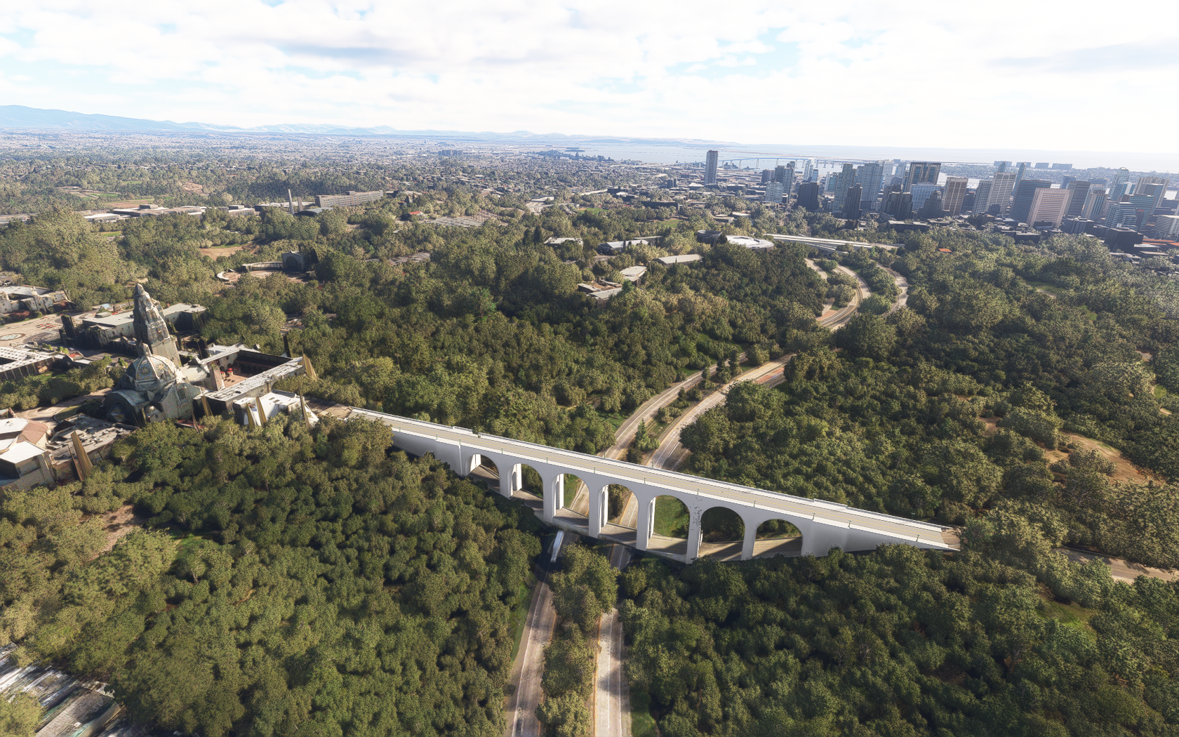 Airportdesigner sorgen in der Regel dafür, dass die Brücken in der Nähe ihrer Flughäfen gut aussehen und ersetzen sie durch handgemachte 3D-Objekte – siehe beispielsweise FlightBeams San Francisco (KSFO) und iniBuilds San Antonio (KSAT). In der Fläche sieht das anders aus. Viele „Radarschattenbrücken“ fallen vor allem virtuellen Sichtfliegern auf, die oft auf nur wenigen hundert Fuß Höhe über dem simulierten Boden fliegen, um die „sensationellen“ Ausichten von MSFS 2020 und MSFS 2024 zu genießen.