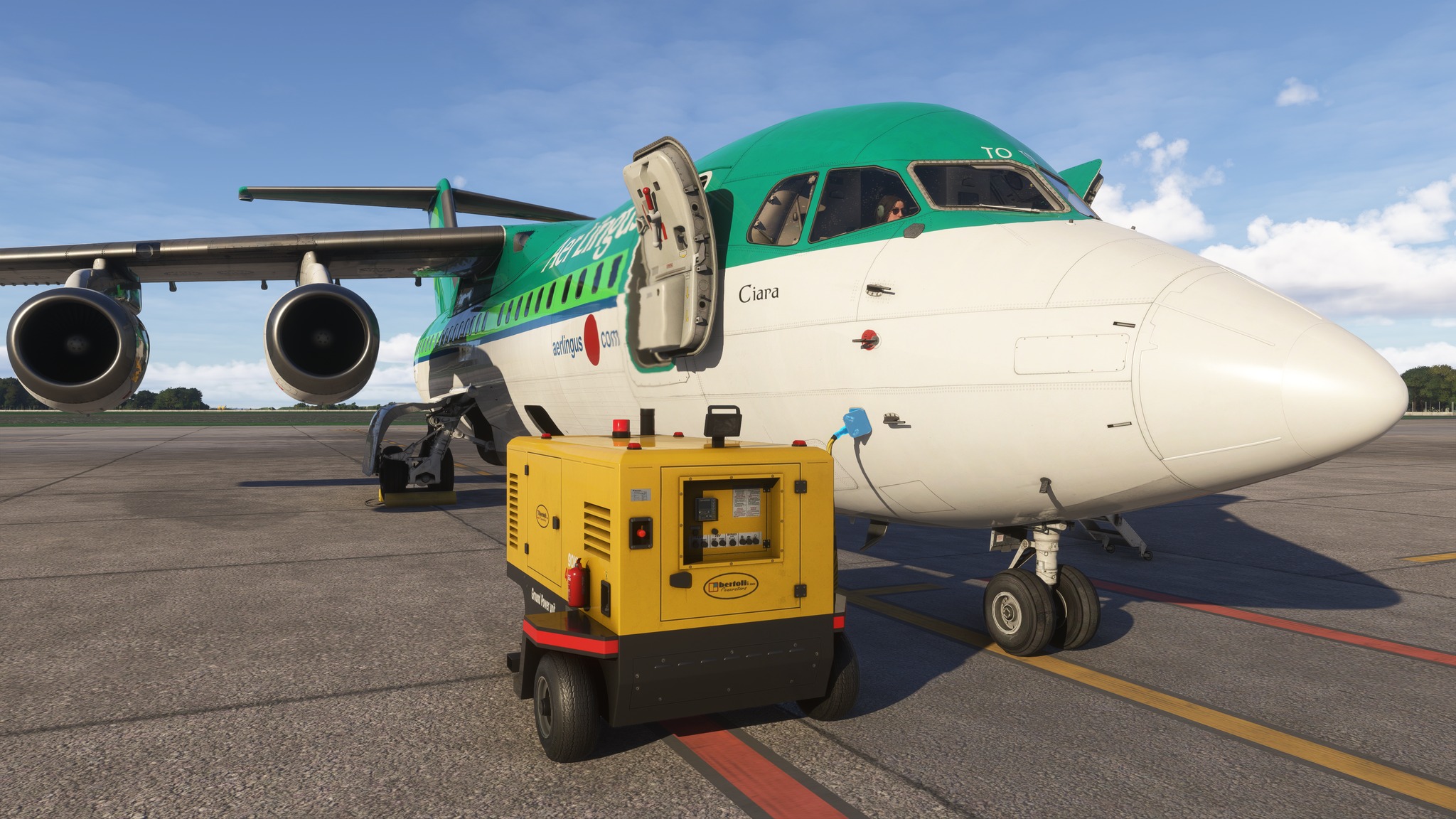 Speziell für die MSFS-2024-Version führte Just Flight einen neuen interaktiven Preflight-Walkaround ein. Er erlaubt es, am Außenmodell Komponenten wie Chocks, Ground Power Unit und Türen zu bedienen.